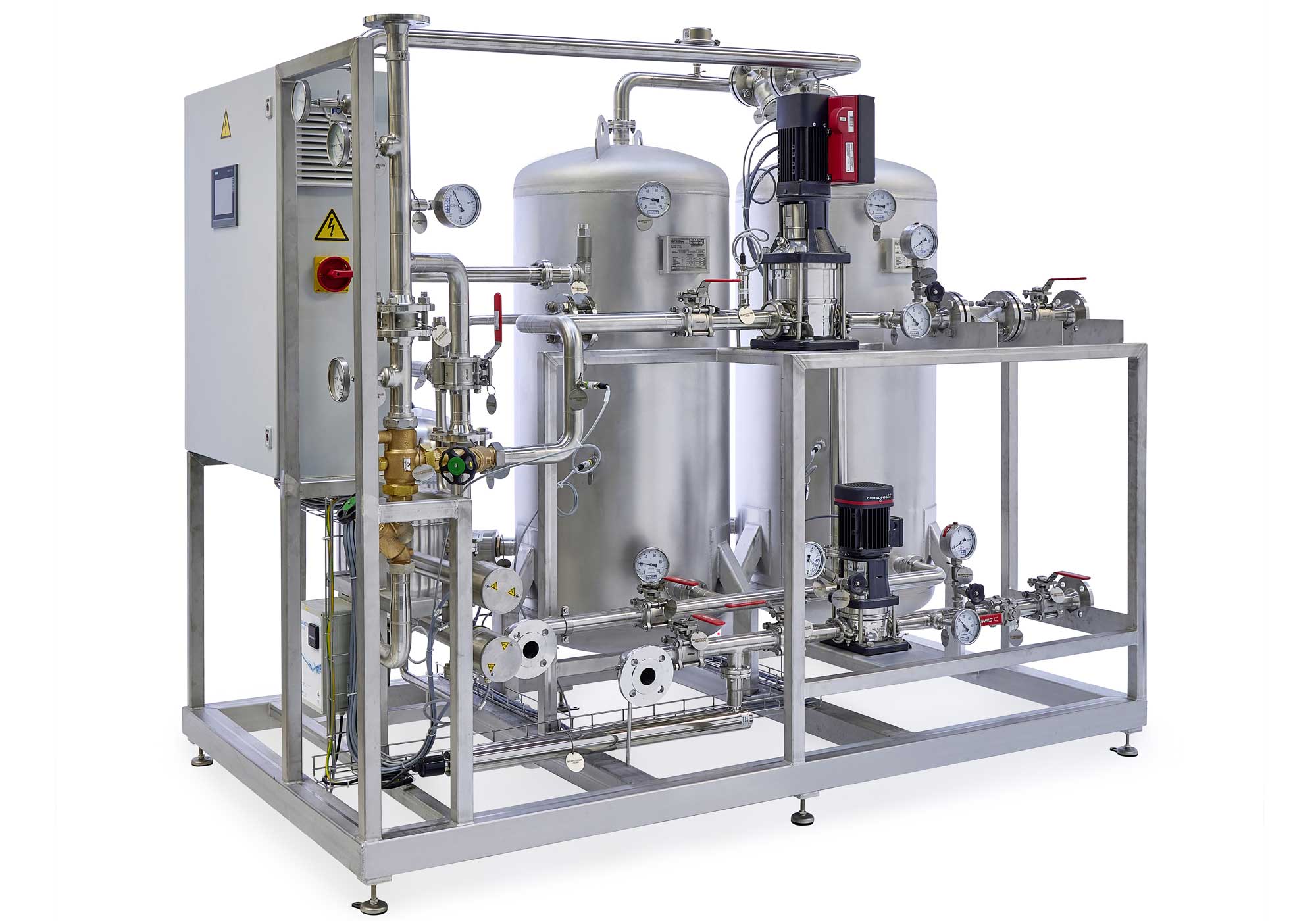 Vorfertigung auf einem Skid. Installation, Inbetriebnahme und Schulung erfolgt beim Kunden. Eine Qualifizierung (DQ, IQ, OQ) der Anlage ist optional möglich.